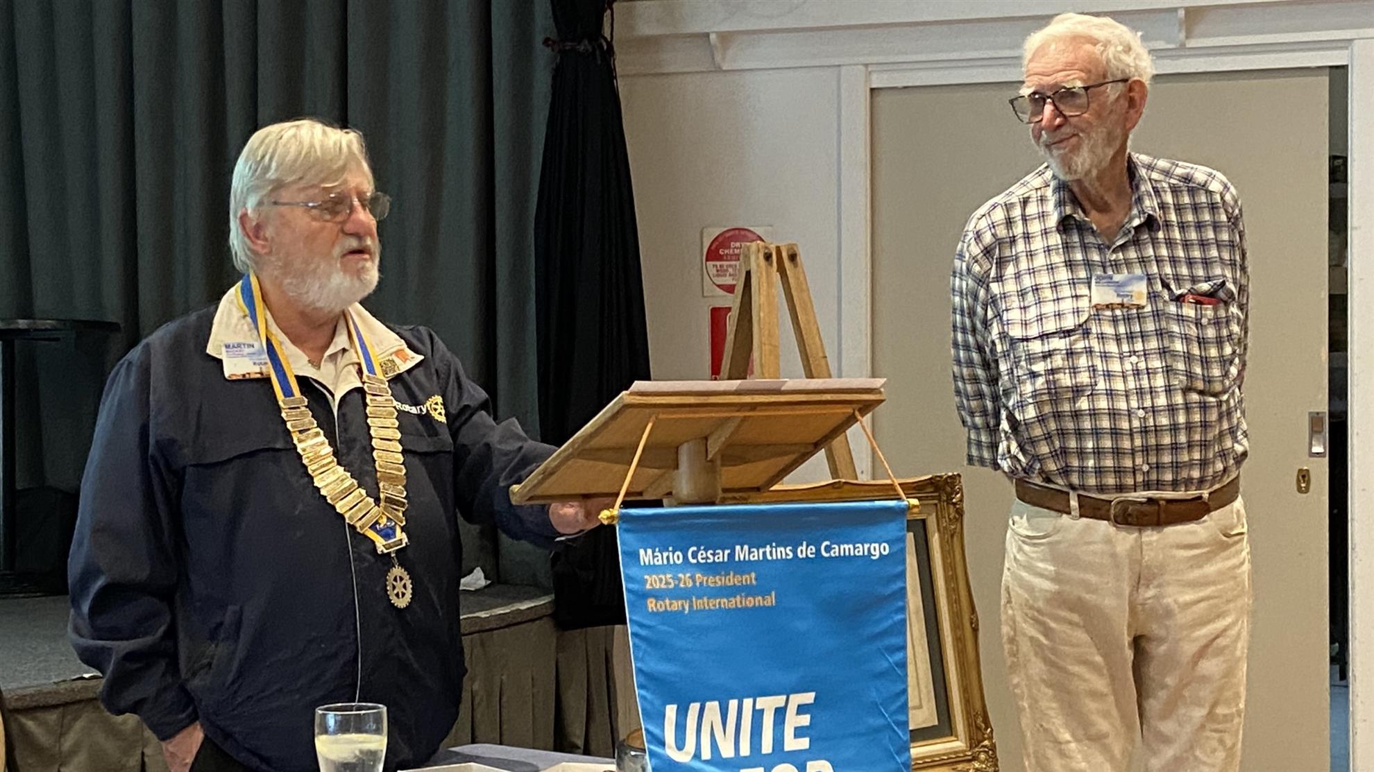 Ay last Thursday's Board Meeting, PP Martin inducted PE John Williamson into the office of President of our club for the next three months. We all congratulate John and wish him well in his Presidency and also thank Martin for a great job as President over the past three months.